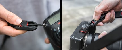 Con questo sistema, non devi fare altro che fissare il cordino Anchor alla fotocamera una sola volta; dopodiché, puoi agganciare e sganciare la cinghia o il cinturino da polso di Peak Design alla tua fotocamera tutte le volte che vuoi. Il cordino Anchor è fissato saldamente alla cinghia o al cinturino e puoi inserirlo o rimuoverlo con estrema facilità, anche con una mano sola. Non dovrai più fare operazioni complicate e perdere un sacco di tempo!