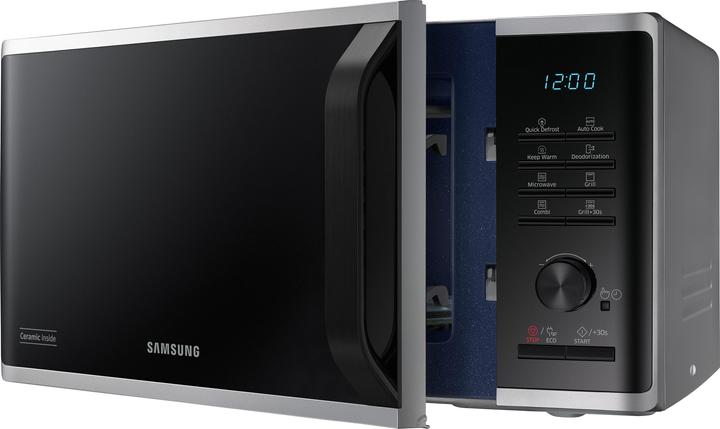 Il Samsung MG2AK3515AS/EG è un forno a microonde combinato versatile, ideale per la preparazione di cibi sul piano di lavoro. Con una capacità interna di 23 litri, offre spazio sufficiente per diversi piatti. Il forno a microonde ha una potenza di 1250 watt, che consente una preparazione rapida ed efficiente. Il display LED integrato e il controllo intuitivo tramite tasti e manopola garantiscono un utilizzo semplice. Il design elegante in nero e argento si integra armoniosamente in qualsiasi arredamento della cucina. Questo forno a microonde non è solo adatto per riscaldare i cibi, ma offre anche funzioni di grill che permettono di cucinare piatti con una superficie croccante. Il Samsung MG2AK3515AS/EG è quindi un'aggiunta pratica per ogni cucina moderna.