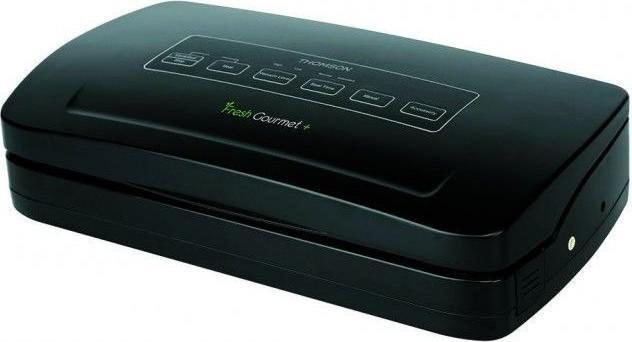 Dispositivo per il confezionamento sottovuoto e la chiusura ermetica degli alimenti, macchina per saldatura. Capacità della pompa di aspirazione: 11 l/min. Dimensioni del dispositivo: 38,2 cm x 20,5 cm x 9,5 cm. Potenza: 110 W. Disponibile in nero.